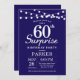 Surprise 60th Birthday Invitation with String Lights. Navy Blue Background. 13th 15th 16th 18th 20th 21st 30th 40th 50th 60th 70th 80th 90th 100th, Any age. For further customization, please click the "Customize it" button and use our design tool to modify this template.