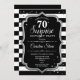 Surprise 70th Birthday - Black White Silver Invitation