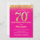 Surprise 70th Birthday Hot Pink and Gold Glitter Invitation