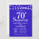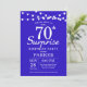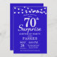 Surprise 70th Birthday Invitation with String Lights. Royal Blue Background. 13th 15th 16th 18th 20th 21st 30th 40th 50th 60th 70th 80th 90th 100th, Any age. For further customization, please click the "Customize it" button and use our design tool to modify this template.