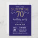Surprise 70th Birthday Navy Blue and Gold Glitter Invitation