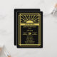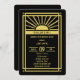This surprise 70th birthday party invitation looks stunning in black and gold. The design features art deco touches including a gold sunburst. The invite is a fun roaring 20s vintage style that will please the 70th milestone birthday celebrant. Copyright henishouseofpaper