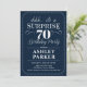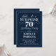 Simple classy design in navy blue and white. Features elegant script font. Surprise bday celebration for man or woman. Can be customized into any age!