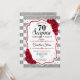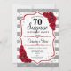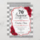 Feminine white, red design with faux glitter silver. Features stripes, red roses, script font and confetti. Perfect for an elegant birthday party. Can be personalized to show any age. Message me if you need further customization.