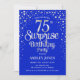 Surprise 75th Birthday Party - Silver & Royal Blue Invitation