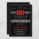 Surprise 80e anniversaire Invitation Rouge et Noir