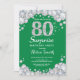 Surprise 80th Birthday Green and Silver Diamond Invitation