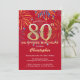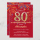 Surprise 80th Birthday Red & Gold Rainbow Firework Invitation