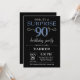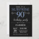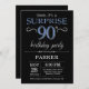 Invitation surprise 90e anniversaire avec Arrière - plan de Parties scintillant noir et bleu. Tableau de bord. Anniversaire adulte. Hommes ou Femmes Anniversaire Invitation. N'importe quel âge. Pour plus de personnalisation, cliquez sur le bouton "Customiser" et utilisez notre outil de conception pour modifier ce modèle.