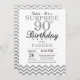 Surprise 90e anniversaire Invitation avec Parties scintillant d'argent Chevron. Parties scintillant noire et argent. Anniversaire adulte. Homme ou Femmes Anniversaire Invitation. Pour plus de personnalisation, cliquez sur le bouton "Customiser" et utilisez notre outil de conception pour modifier ce modèle.