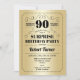 Surprise 90th Birthday Invitation. Retro design in faux foil gold and black. Cheers to 90 years! Can be also personalized into any year.