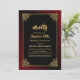 Black surprise 90th birthday party invitation with an ornate gold frame featuring a red ombre outer border to complete the design creating a vibrant invitation for your special occasion.