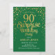 Surprise 90th Birthday Party - Green & Gold Invitation