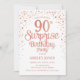 Surprise 90th Birthday Party - Rose Gold & White Invitation