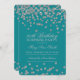 Elegant Surprise 90th Birthday Party invitation design with Silver Glitter Confetti motif on Teal, custom name and date and additional text. Easy to use and easy to personalize.