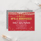 Elegant gold surprise party invitation with string light design on red background. Classy design.