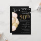 Surprise Balloon Black Gold 50th Birthday Invitation