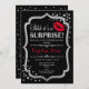 Elegant black white design with faux glitter silver. Features red lips kiss, black white stripes, confetti and script font. Perfect for an elegant birthday party. Can be customized into any age! Message me if you need further customization.