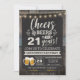 Surprise Cheers and Beers 21st Birthday Invitation featuring chalk board and lettering with customize-able age.