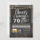 Surprise Cheers and Beers 70th Birthday Invitation avec plateau de craie et lettrage avec âge personnaliser.