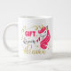 Some days, a regular size cup of joe just won’t do. When you need that extra jolt of caffeine, reach for your extra-large coffee mug from Zazzle. It will accommodate a full 20-ounce Venti pour. Perfect for soup, cereal, ice cream, or chili too! This giant mug features a C-shaped handle for comfortable sipping.