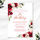 SURPRISE PARTY 21st Birthday Red Pink Floral Invitation