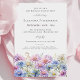 Elegant watercolor asters create a floral border at the bottom of this surprise birthday party invitation. The soft pastel purple, pink, blue and white flowers are the September birth month flower making this the perfect theme for your September birthday.