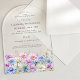 Elegant watercolor asters create a floral border at the bottom of this arch-shaped acrylic surprise party birthday invitation. The soft pastel purple, pink blue and white flowers are the September birthday month flower making this the perfect theme for your September birthday.