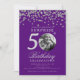 SURPRISE Photo 50 Birthday Silver Confetti Purple Invitation