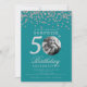 SURPRISE Photo 50 Birthday Silver Confetti Teal Invitation