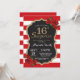 Surprise Red Rose 16th Birthday Invitation Gold Glitter. Black and Gold Birthday Party Invite. Gold Glitter. Red and White Stripes. Chalkboard. Printable Digital. For further customization, please click the "Customize it" button and use our design tool to modify this template.