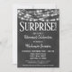 A fun black and white chalkboard surprise retirement party invitation with glowing lights at the top.