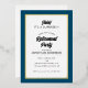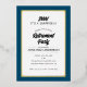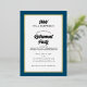 This surprise retirement party invitation offers a sleek professional layout with a dark blue and gold foil border. Custom text allows you to add your retirement party details.