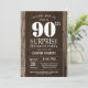 Surprise Rustic 90th Birthday Invitation with Rustic Wood Background. Vintage Retro Country. Adult Birthday. Male Men or Women Birthday. Kids Boy or Girl Lady Teen Teenage Bday Invite. 13th 15th 16th 18th 20th 21st 30th 40th 50th 60th 70th 80th 90th 100th. Any Age. For further customization, please click the "Customize it" button and use our design tool to modify this template.