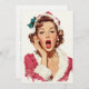 This charming vintage-style Christmas pin-up features a surprised woman in a festive Santa outfit, complete with soft fur trim and a playful bow. Her expressive pose and classic retro aesthetic create a warm, nostalgic holiday vibe. Perfect for seasonal products like apparel, mugs, cards, décor, and gifts that celebrate timeless Christmas cheer.