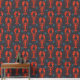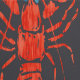 Surreal Animal Design With Lobster Pattern In block print style. Vintage animals wallpaper with red lobsters.