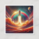 surreal art design with vibrant colours, depicting a rocket launching into space. Perfect for inspiring a sense of wonder and exploration, this design combines bold surrealism with imaginative cosmic elements to create a captivating and dreamlike visual.