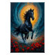 Transform your space with this powerful Surreal Black Horse Wall Art, a cinematic digital artwork designed to create a bold statement in any room. This masterpiece features a majestic midnight black horse charging forward through vivid red poppies beneath a mesmerizing teal vortex sky glowing with warm golden light.