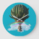 Surreal Cat Hot Air Balloon with Cactus & Rainbow Large Clock
