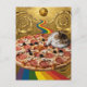 An surreal sci-fi pizza with an adorable sleeping kitty floating with a gold sphere planet shape in the background AI generated art
