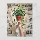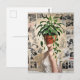 A beautiful woman with a plant in a pot as her head surreal fantasy art in the style of a mixed media collage