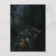 Surreal nighttime scene of a boy in a forest, meeting a few fireflies along the way.