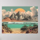 Surreal Ocean and Mountain Landscape with Waves Poster