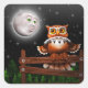 Surreal Full Moon smiling to Whimsical Owl on a Bright Night Full of Stars, 3d digital art design.