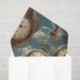Fun tissue paper features surreal AI generated pattern of Steampunk style vintage floating pocket watches on sky background