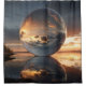 Surreal visualization of a giant reflective sphere containing glowing clouds and sunset mirrored over a calm lake surface. Perfect for concept art, 3D visualization, digital matte paintings, and creative projects requiring surreal reflective elements.