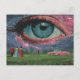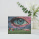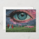 Surreal Retro People and Car with an Eye in Sky Postcard