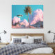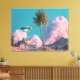 Surreal UFO and Palm Tree Mountain Scene Canvas Print