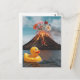 AI generated art of a surreal rubber duck in front of a volcano that is blowing up flowers and lava it was supposed to be just flowers but AI had a mind of it's own and added the lava anyways