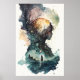 Surreal Watercolor Illustration Poster 24"x36" This vibrant and surreal image invites the viewer to explore a fantastical world where reality and imagination collide. Shapes combine to create a dreamlike landscape that defies logic and reason. Whether a scene from a strange dream or a glimpse into an alternate reality, this surreal image is sure to intrigue and captivate the viewer.